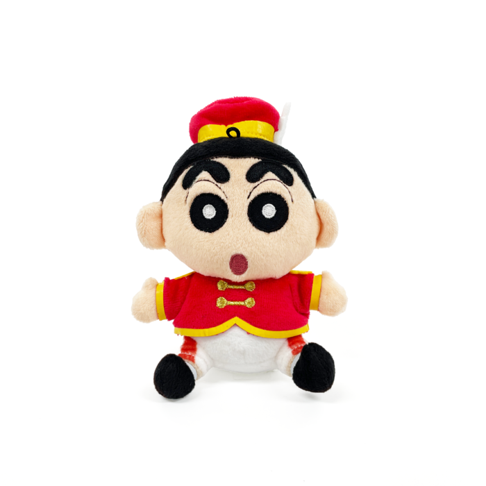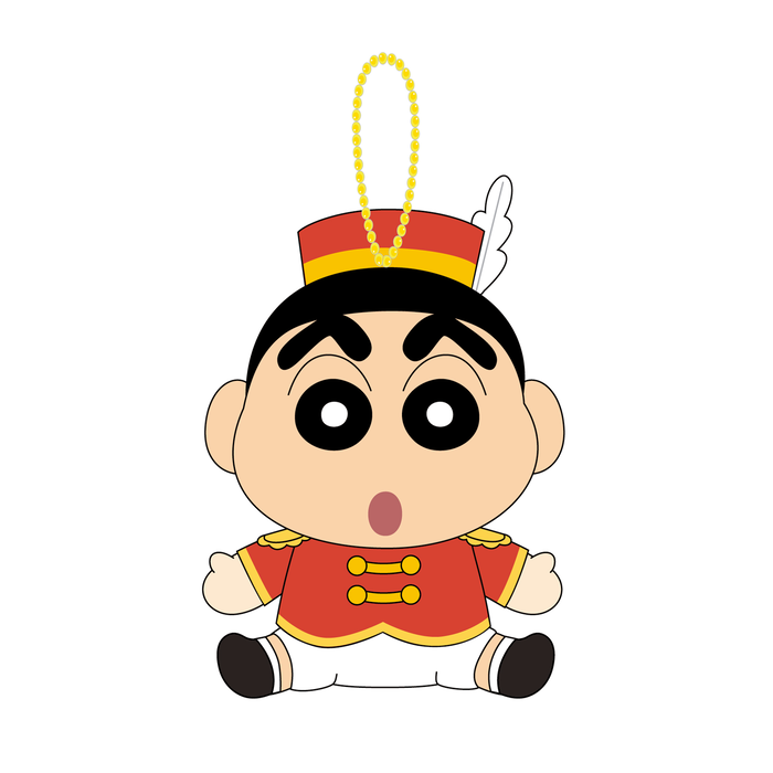 マーチングバンド衣装のしんちゃんがぬいぐるみマスコットに!ボールチェーン付きだから、カバンやポーチにぴょこっと付けて連れて行けます。