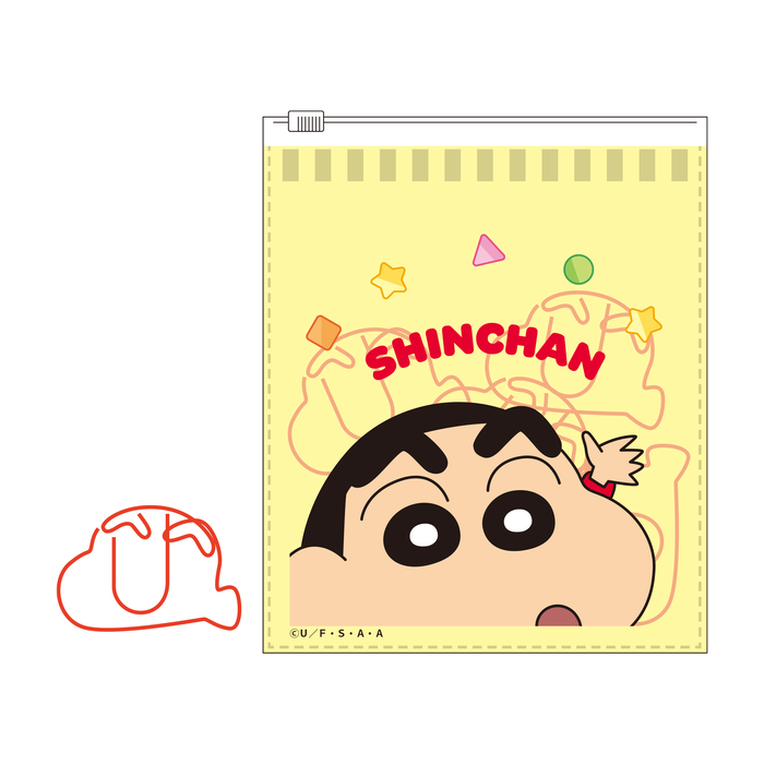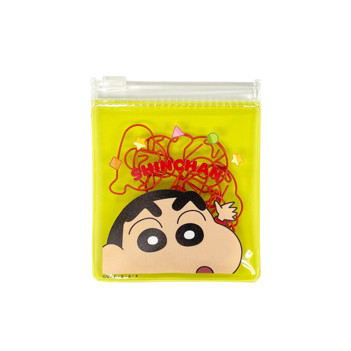 しんちゃんの顔型クリップが10個入り!可愛いポーチ付き。書類やノートを楽しくまとめちゃおう♪