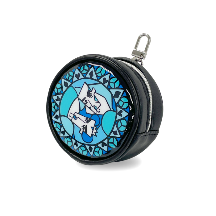 合皮を使用した高級感あふれるミニポーチ。スゲーナスゴイデストランプのチャーム付き!